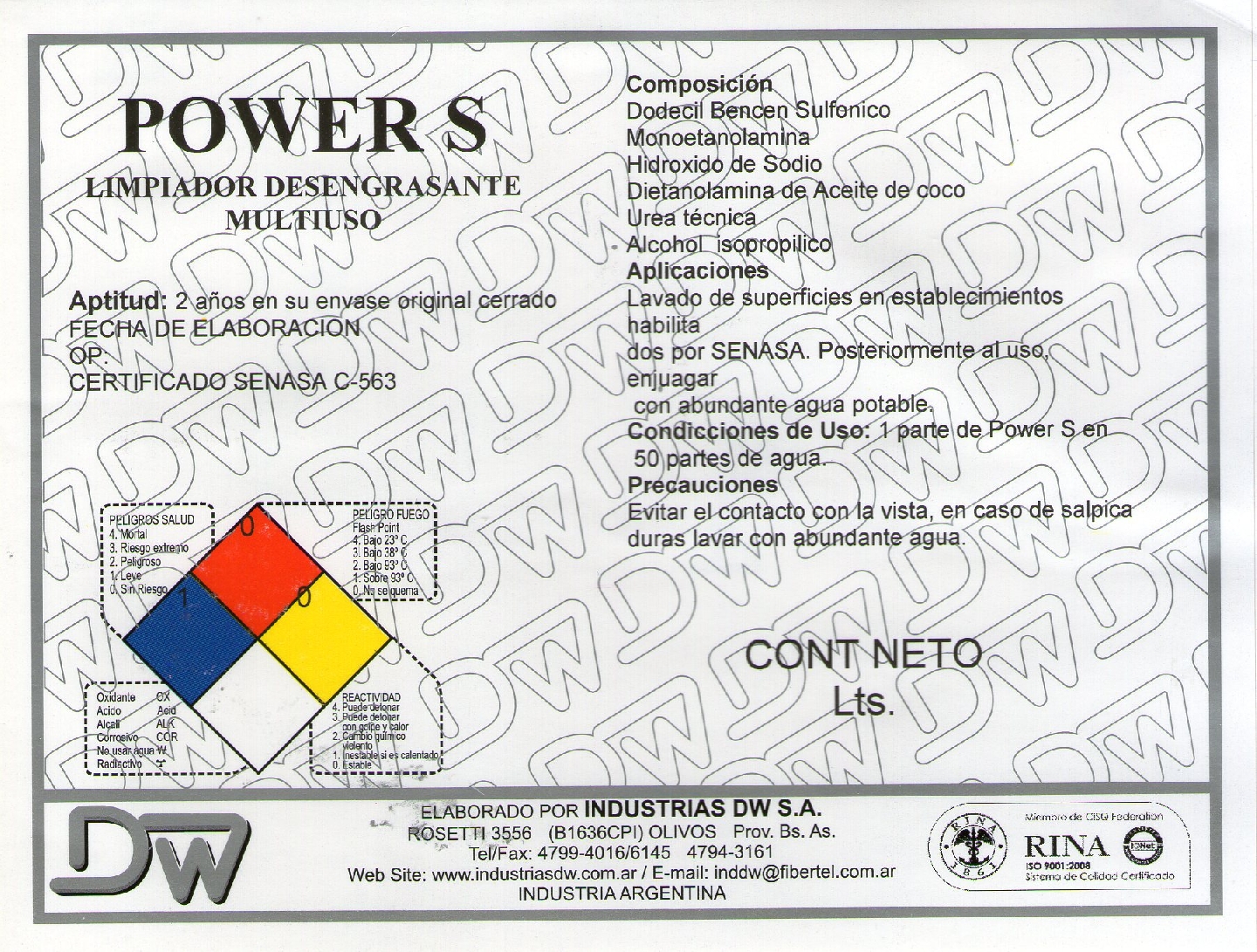 Excelente comportamiento en la limpieza de grasas animales, minerales, vegetales e hidrocarburos.